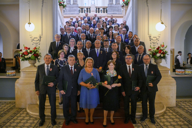 A magyar nemzet méltóságának gerincét azok adják, akiket most ünneplünk – hangsúlyozta a felsőoktatásért, szak- és felnőttképzésért, fiatalokért felelős államtitkár, aki állami elismeréseket adott át Kiss-Hegyi Anita kulturális kapcsolatokért felelős államtitkárral pénteken Budapesten, a Pesti Vigadóban.